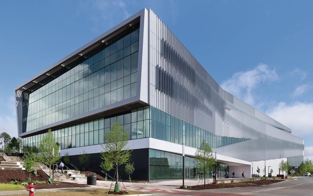 Now in its ninth year of operation amongst old and new homes in Raleigh, NC, the James B. Hunt Library honors NC State University’s standing as a leading tech research institution. Visitors will marvel at the curved digital screens, touchscreen display kiosks, and its "bookBot," an underground robotic device that retrieves books from the library's 1.5 million titles located in an underground facility.